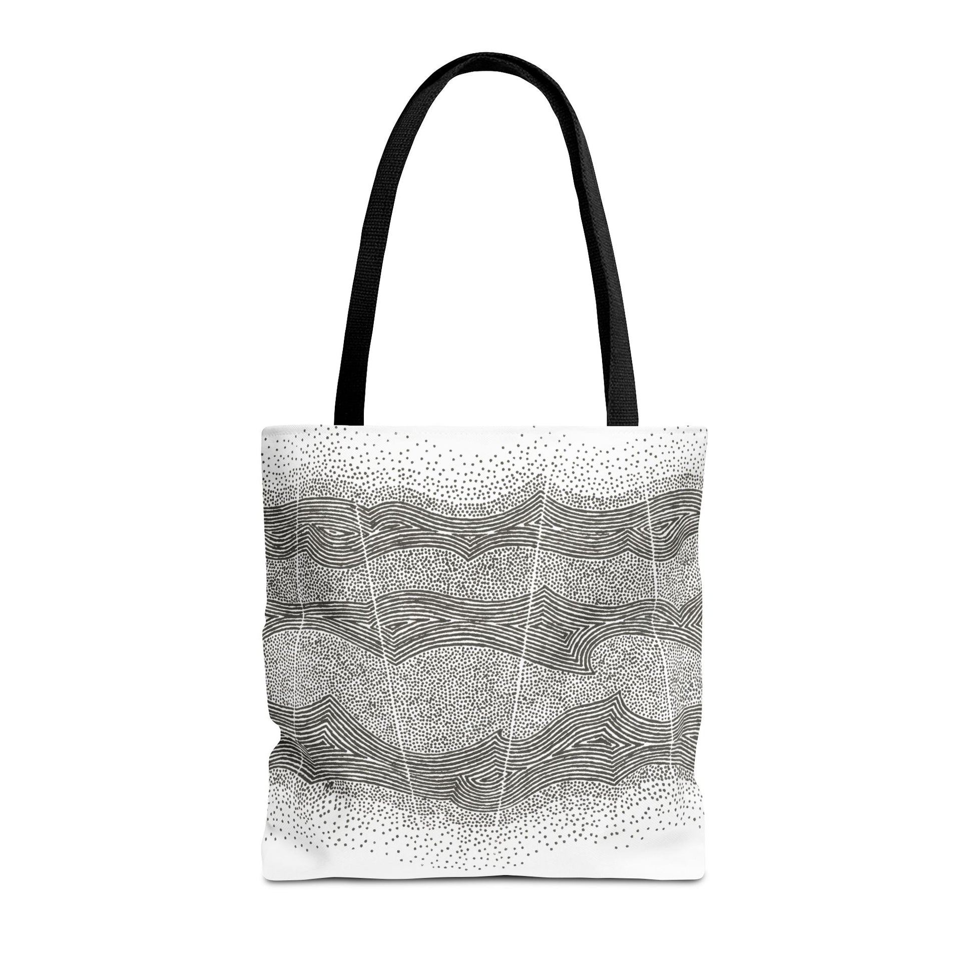 Littoral is a study in edges, where one surface gives way to another. Layered bands drift like tide lines, and dense stippling gathers and thins the way silt settles after water moves through. Minimal, but not quiet: a small landscape of pressure, rhythm, and repetition.